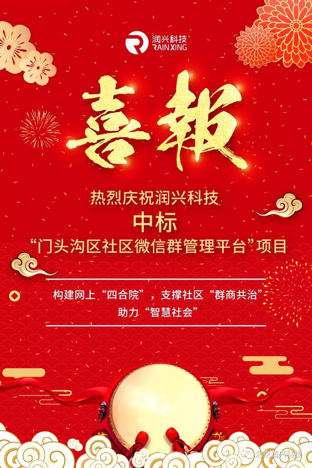 北京潤衆科技有限公司于2019年(nián©α §)03月(yuè)01日(rì)中标“門(mén)頭溝社>®✘區(qū)微(wēi)信群管理(lǐ)平台”建設項目。
